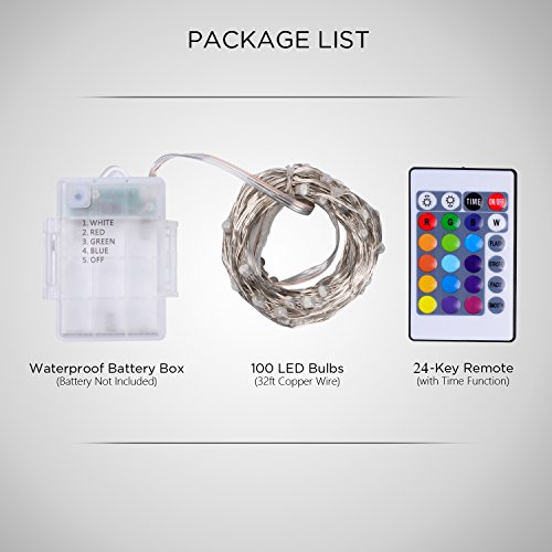 - Fantastic 16 Colors: Awesome 32 ft / 100 LEDs dimmable lights with 16 individual color, perfect for Bedroom, Corridor, Patio, jars, vase.