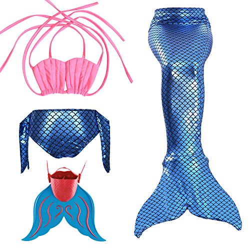 -. Title : 4pcs Sparkle Mermaid Tail with Monofin for Swimming, BESTYLING Mermaid Bikini Set Swimsuit Suit for Girls