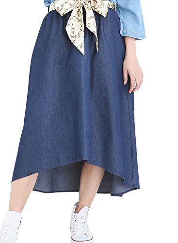 -. Title : (ハッピーマリリン)A HAPPY MARILYN 大きいサイズ レディース お呼ばれ ゆったり ウエストゴム スカーフベルト付き フィッシュテール デニム ロング丈スカート 体型カバー 172011