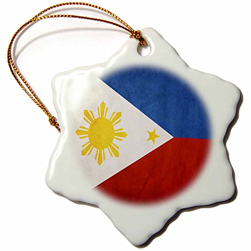3drose Philippines Flag Snowflake Porcelain Ornament, 3-Inch