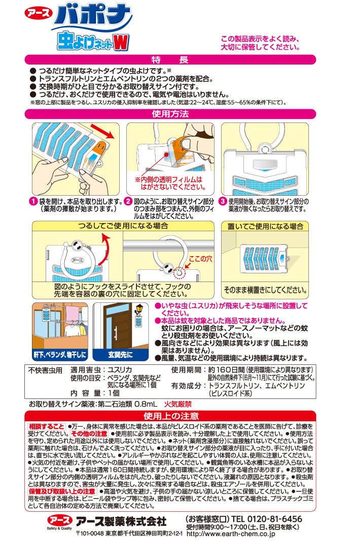 "Earth Pharmaceutical Vapora insect repellent net W 160 Days 1 piece" is a simple net type insect repellent only to put a vine.
