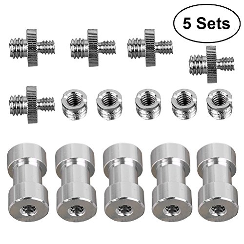 - Color: As shown. - Material: Metal. - 1/4"Female-3/8"Female spigot adapter: - Adapter Size (diameter x Length): 15.5mmx28mm. - One side: 1/4" thread, the other side: 3/8" thread. - 1/4"male-3/8"male screw adapter: - Adapter Size (diameter x Length): 16mmx19mm. - One side: 1/4" thread, the other side: 3/8" thread. - 1/4"Female-3/8"male screw adapter: - Male thread (outside): 3/8". - Female thread (inside): 1/4". - This adapter set can be attached to a range of different photography accessories, Such as Umbrella Holder Swivel Light Stand. - It is a handy tool screw for your photography setup. - Made of premium metal material, it is durable and practical. Package Including 5 x Set of 1/4 Inch 3/8 Inch Tripod Mount Screw Convert Adapter Flash Light Stand Spigot 0