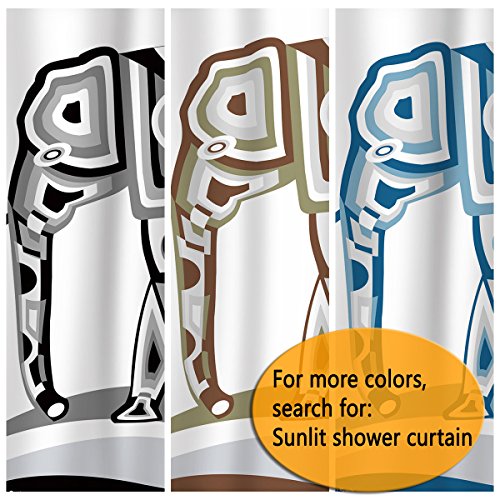 Sunlit Designer Abstract Geometric Art Elephant Shower Curtain Exotic Oriental Nature Tropical Wild Animals - Gray Black and White