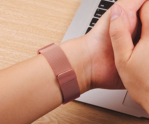 Fitbit Charge 2 Bands, Stainless Steel Metal Bracelet Strap with Unique Magnet Lock (Milanese-Rose Gold)