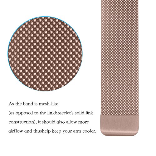 As the band is mesh-like (as opposed to the linkbracelet's solid link construction), it should also allow more airflow and thushelp keep your arm cooler