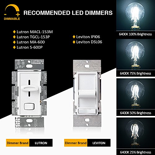 - ▲Perfect dimming performace.Smooth dimming capabilities from 20% to 100% provides you the best lighting according to your need. You’re able to adjust the light brighness to creat a perfect atmosphere at anytime and anywhere.(Suitable for silicon controlled dimmer.RECOMMENDED DIMMER BRAND:Lutron and Leviton) .