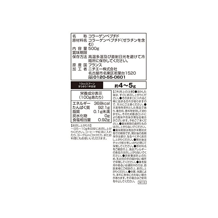 nichie 저 분자 피쉬 콜라겐 100% 파우더 1kg (500g×2 포) 10cc스푼부