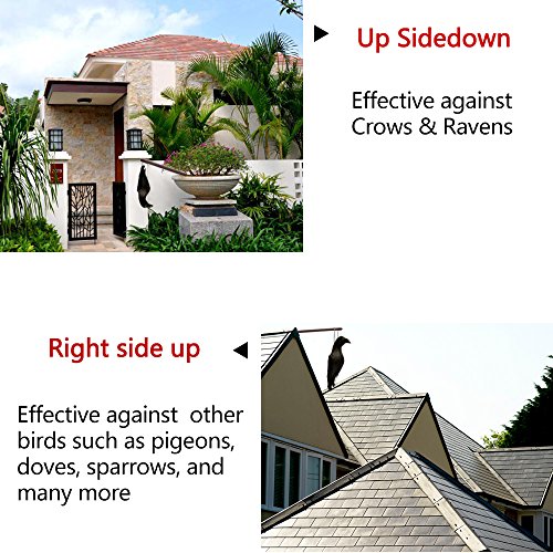 -. Feature : Material: Plastic, Weight: 238g, Size: 38*13*11cm / Effective bird deterrent. Humane, chemical-free pest control device. / Weather-proof and durable. No batteries needed. / Hang upside down to scare crows and ravens. Hang it right side up to scare other birds such as pigeons, doves, sparrows, and many more! / Particularly useful for guarding: vegetable gardens, flower gardens, decks, boat docks, rafters, barns, open porches, patios