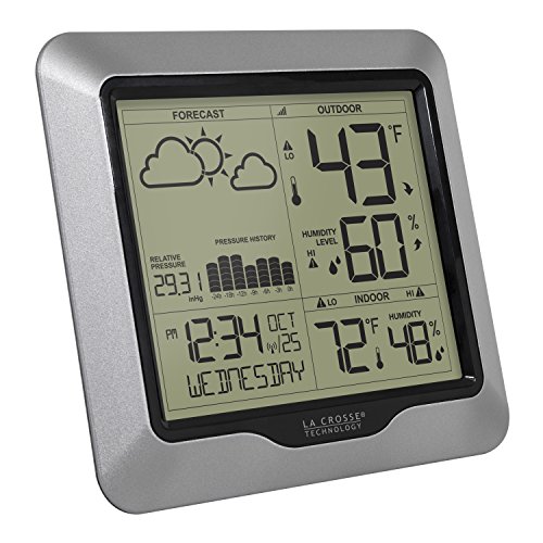 ReleaseDate : 2017-10-12 Studio : La Crosse Technology, Ltd. Publisher : La Crosse Technology, Ltd. Binding : Kitchen Product Description Sleek, stylish display shows all your complete backyard weather with fast reception, and wireless technology. Easy-to-Read display features: Forecast outlook icons with Tendency, Pressure with Historical Graph, Both Indoor Outdoor Temperature (F/ C) and Humidity (%RH), and Atomic self-set time with Automatic for Daylight Savings Time Updates. Weather station includes one wireless temperature/humidity sensor (TX141TH-Bv2) to monitor backyard climate, garage or storage room, in an attic or greenhouse, even a wine cellar. With its 915 MHz Instant Transmission, it allows faster outdoor transmission, longer range distance of 330 feet from the base, lower outdoor temperatures readings of down -39.8 F, and a longer battery life. Wireless capabilities with digital technology, it's can be portable to take with you practically anywhere! 0
