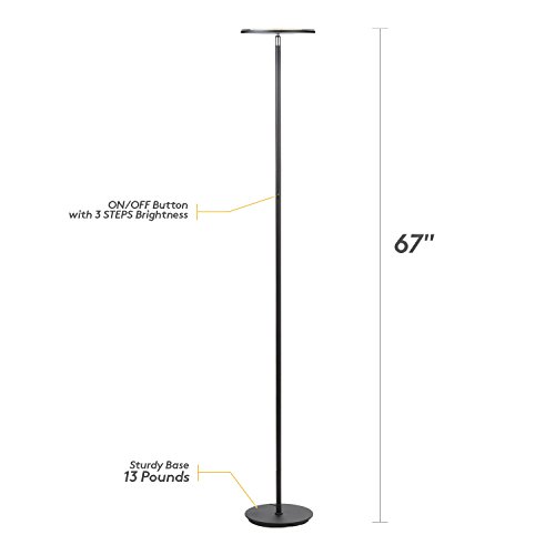 - STURDY & SAFE DESIGN: Brightech designed the SKY 30 Flux Torchiere Floor Lamp with safety in mind. This LED lamp will never overheat and stays cool to the touch so that it is easy to reposition the adjustable rotating head. It can be left on for hours and will not make a room hot or uncomfortable. Its weighted base and sturdy design make it wobble free and safe to have around children and pets because it will not easily tip. Brightech lamps are built to last and are the safest on the market!
