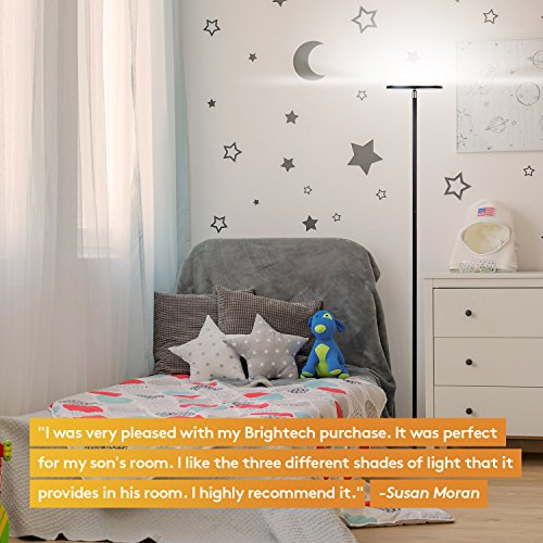Brightech SKY 30 Flux LED Torchiere Floor Lamp – Energy Saving, Dimmable & ADJUSTABLE COLOR TEMPERATURE- Modern Tall Standing Pole Uplight Lamp Light -Living Room, Dorm, Bedroom & Office –Black