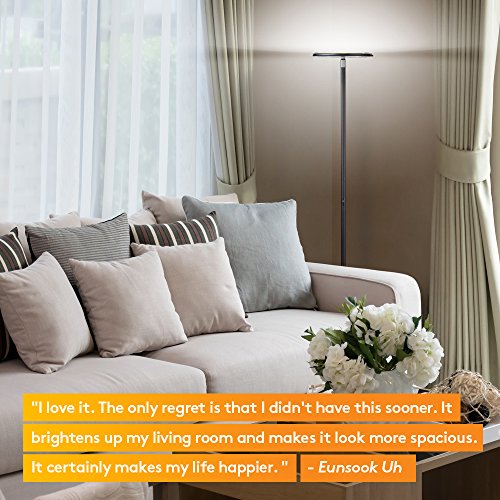 - MODERN STYLE & FUNCTIONAL DESIGN: Brightech combines both style and function with this sleek SKY 30 Flux LED Torchiere Floor Lamp. It’s adjustable color temperature and adjustable brightness allows for the perfect lighting in your home, dorm, or office without taking much space. Its round rotating head easily pivots and shines light in any direction that you need it. It is available in 5 different finishes that blend well with casual, contemporary, or ultra-mod décor.