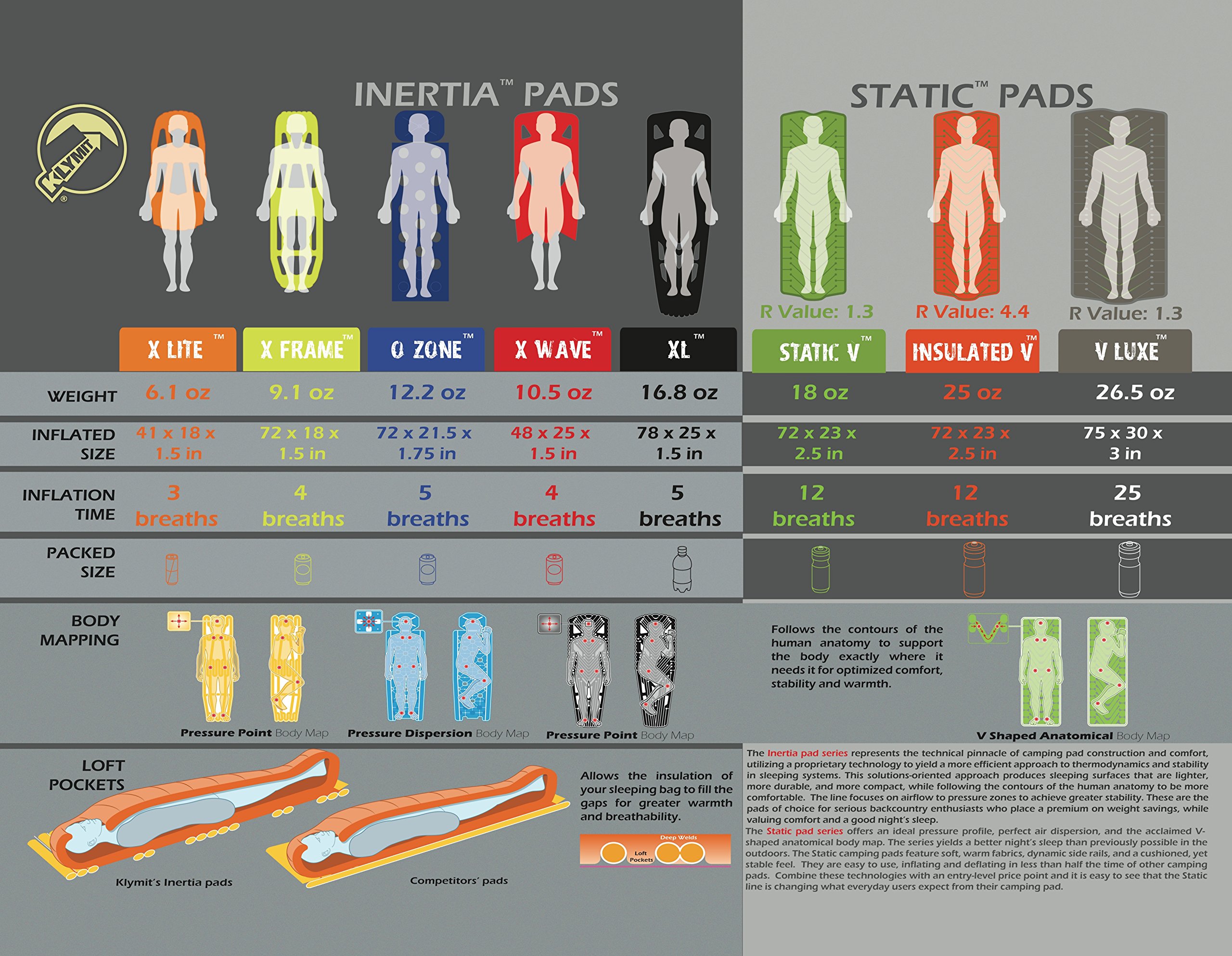 It can inflate full with breath of about 10 to 15 times, and our unique V chamber system suppresses movement of air inside the pad.
