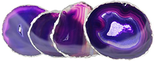 Stephen D. Evans Purple Agate Coasters, Set of 4, Silver