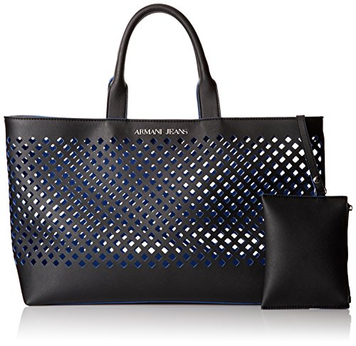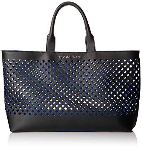 - Title : Armani Jeans Perforated Contrast Tote Shoulder Bag, Black, One Size