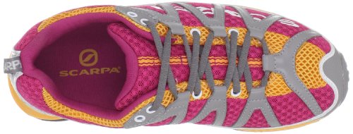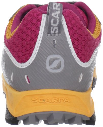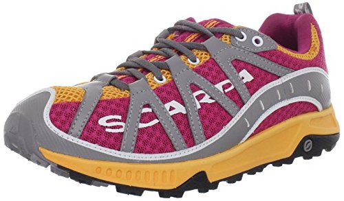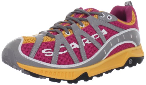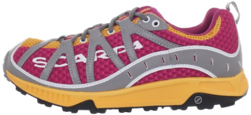The Scarpa Spark Women's Trail Running Shoes are an award winning product, engineered for fast performance over tricky terrain. Utilising a CMEVA sole unit for superb lightweight, cushioning throughout your stride and a Speedlite sole unit which offers a 6mm differential to help create natural movement from heel strike to take off increasing shock absorption and helping to reduce fatigue. An additional EVA layer is featured across the forefoot to reduce stretching meaning that as your shoe ages it will retain it's underfoot support. The outsole features a dedicated braking zone and Helix lugs which provide multi-directional grip. The Spark's upper features an ultra light polyester mesh which reduces weight and maximises breathability as well as a synthetic rand which adds low profile protection for your foot on rough terrain.Feature