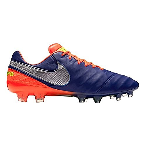 Binding : Sports Apparel Product Description DOMINATING TOUCH STARTS FROM WITHIN Equipped with hidden innovations that bring your foot closer to the ball than ever, the Nike Tiempo Legend VI Firm-Ground Football Boot is made with non-slip technologies and premium leather to truly dominate on the pitch. Snug Fit Premium kangaroo leather upper is supported by a new internal midfoot cage to give you less slippage and unparalleled lockdown. Dominating Touch Kangaroo leather with All Conditions Control (ACC) technology provides unrivaled ball touch and consistent control in dry or wet weather. Maximum Traction Flexible plate moves with your foot for stability, traction and comfort, while conical and bladed studs enhance traction and underfoot ball control. More Details Firm-ground (FG) studs for use on short-grass pitches that may be slightly wet but rarely muddy Moulded EVA sockliner for arch support and impact protection Internal silicone dot grid grips the insole to prevent slipping Colour Shown: Deep Royal Blue/Total Crimson/Bright Citrus/Chrome 0