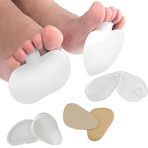 HLYOON H06 4 Pairs Gel Metatarsal Pads and Ball of Foot Cushions, Leather Forefoot Pads,High Heels Pads