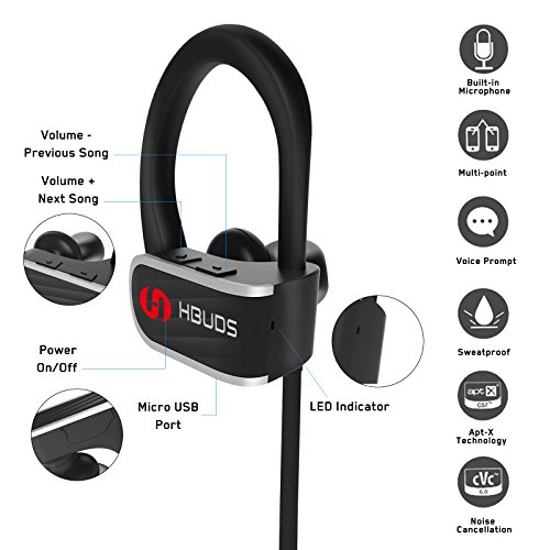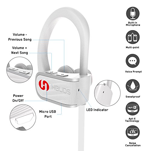 【Stabile Verbindung&Hohe Wiedergabequalitiat】: Die Hbuds kabellosen Kopfhorer verwenden die Technologie von APT-X und CVC 6.0, und garantieren so ein optimales Musikerlebnis ohne Verzogerungen und Gerausche von aussen. Mit der kabellosen Bluetooth 4.1-Technologie, bleiben Ihre Gerate sicher verbunden - ob Sie Ihre Freunde anrufen oder Musik horen. Nutzen Sie die nahtlose Kopplung mit jedem Android-, iOS-Bluetooth-Gerat und die Multipoint-Funktionalitat, um zwei Gerate gleichzeitig zu verbinden.