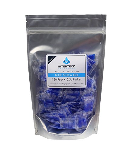 150 Pack of Half Gram Blue to Pink Indicating Silica Gel Packets Desiccants [1.35" x .85"] - RECHARGEABLE By Listing Instructions