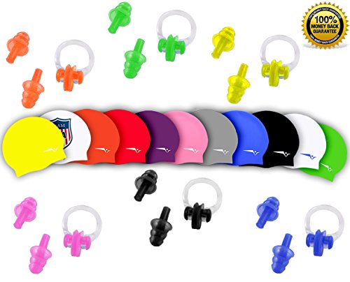 4 in 1 Deal: Together with your Per-Swim Silicone Cap you will receive our Reusable zippered Protective pouch, Earplugs and Nose Clip. High Quality Soft Hypoallergenic Silicone material with ergonomic design that will that will take your swimming experience to a whole new level. Prevent overpressure and keep water away from your ears with our ergonomic Earplugs that produce a watertight seal.