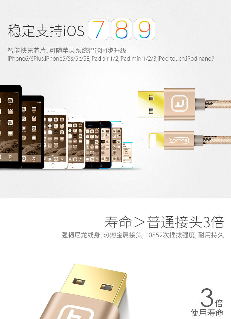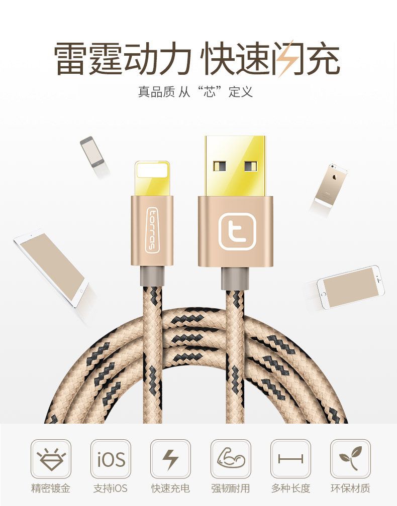 图拉斯 苹果数据线iPhone6手机5s加长6s苹果6充电线器5P六Plus2米
