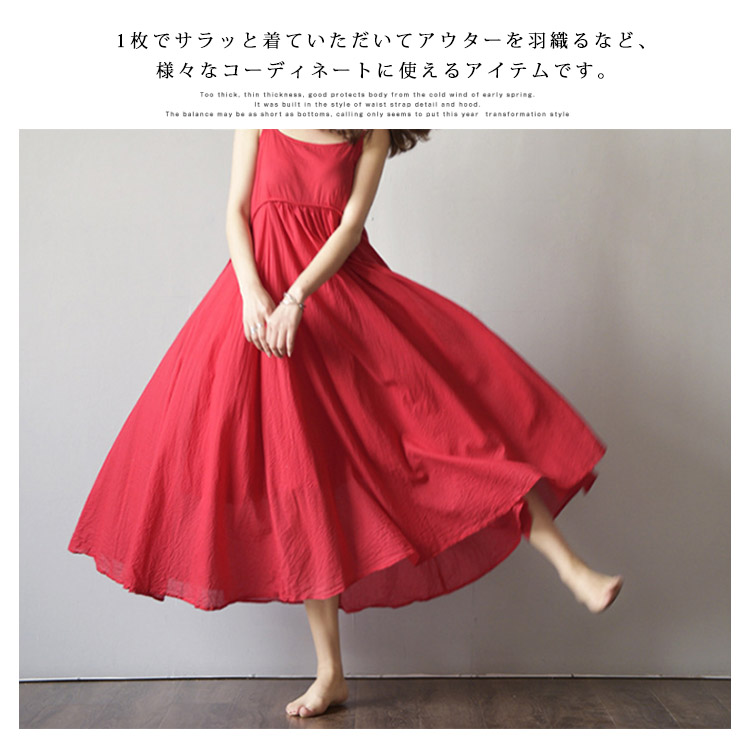 | 「リラックスtimeを楽しめたい」そんな方にオススメな一枚。大人カジュアルにもフェミニンスタイルにも着回し自在なキャミソールワンピース。女性らしいマキシシルエットと柔らかな質感が魅力!インナーにTシャツやブラウスなどをレイヤードしてもOK。1枚でサラッと着ていただいてアウターを羽織るなど、様々なコーディネートに使えるアイテムです。着こなしの幅が広がるベーシックな4色ご用意しました! | |