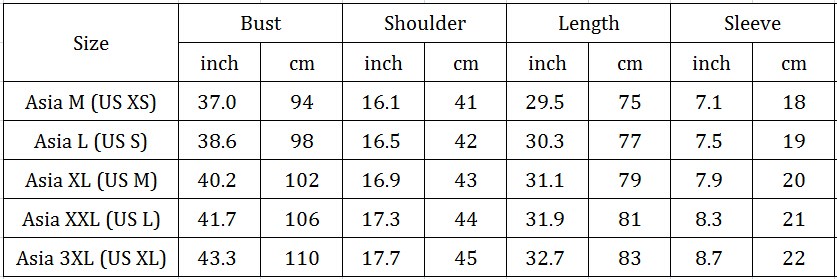 Package including: 1 Piece T-shirt (Asia size, Runs small)