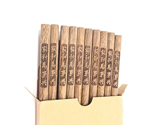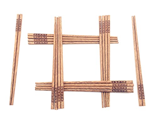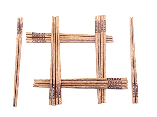 Guaishou Chinese Natural Wood Chopsticks 10 pairs set Smooth Surface Premium Material 9.8-inch Long Brown (Color1)
