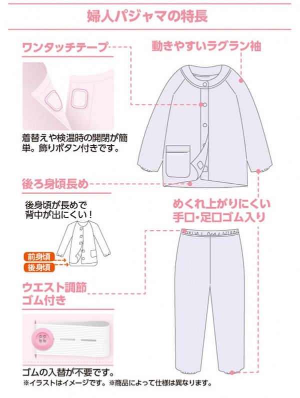 着替えや検温時の開閉が簡単。飾りボタン付です。