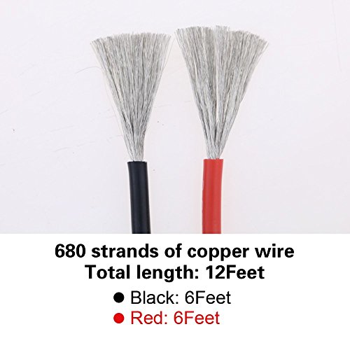 12 Gauge silicone wire, Total length: 12 Feet (6ft red and 6ft black)