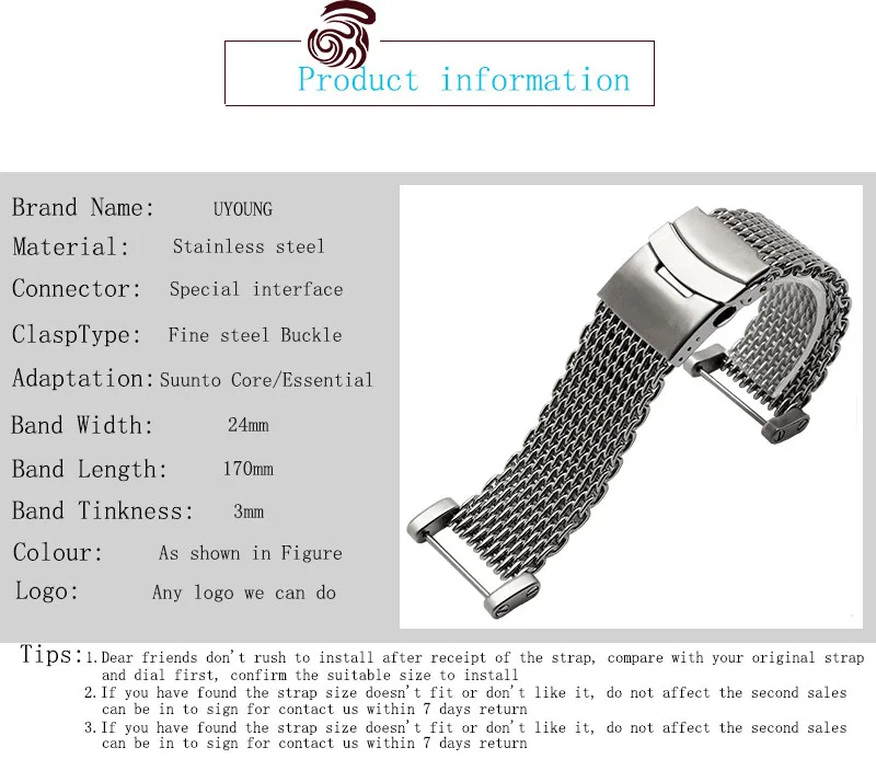 [해외] 고품질의 스테인레스 스틸 손목 24 미리메터 시계 스트랩 suunto 코어/에센셜 망