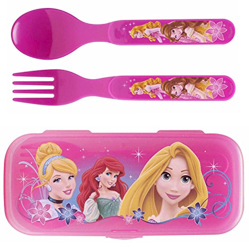 Disney Princess Flatware Set for Kids Toddlers Girls (3 Pc: Spoon, Fork, Travel Case)