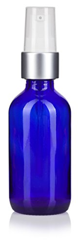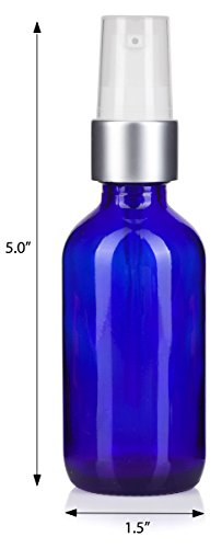 Cobalt Blue Glass Boston Round Luxury Silver and White Treatment Pump Bottle - 2 oz / 60 ml (12 Pack) + Funnel and Labels