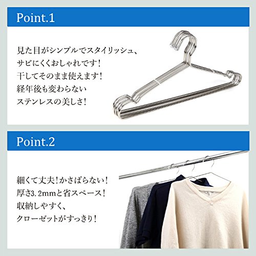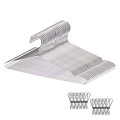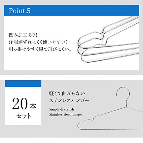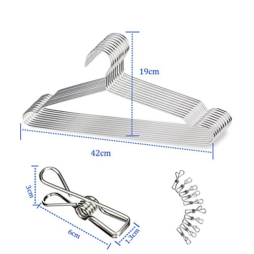 ハンガーサイズ:全長 幅 約42cm×最長 高さ 約18㎝ 1本辺りの厚さ:3.2mm 材質:304 ステンレス セット内容:20本ハンガー&贈り物の10本ピンチ