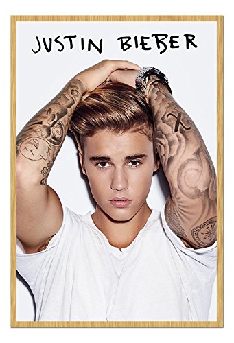 -. Title : Justin Bieber White T Poster Magnetic Notice Board Beech Framed - 96.5 x 66 cms (Approx 38 x 26 inches)
