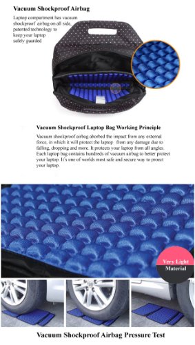 - Feature : Built-in Patented Vacuum Shockproof airbag that fits and protects most laptops up to 14.1 in screen size / Fully-featured organizer compartment for files and an interior organizer for pens, business cards and digital devices / Light weight vacuum shockproof airbag keeps your laptop safe due falling or droping / Size: 14.1 x 4.7 x 11 (in) / Unique, cool sleek design, nylon fabric material