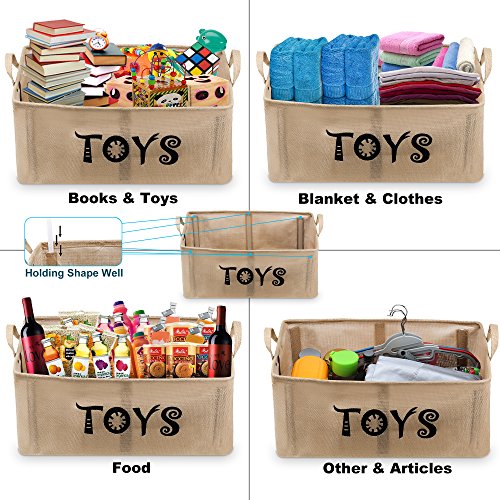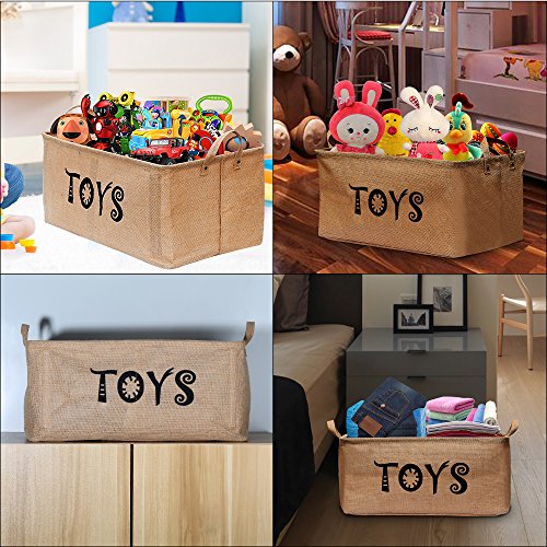 - Stylish and Functional-Nice burlap material with two handles, cute and keeps baby's toy mess manageable, easy for children to get all toys out, also learn the word! TOYS.