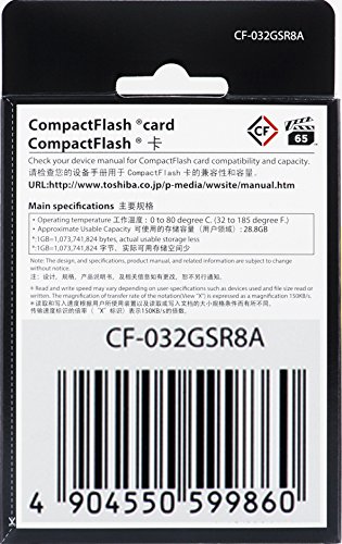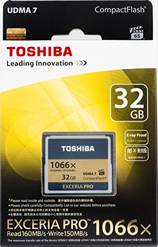 Super fast speed 1066 times speed (maximum reading speed 160 MB / second, maximum writing speed 150 MB / second) 32 GB CF card Description: Compact flash card manufacturer: Toshiba series: EXCERIA PRO product number: CF - 032GSR 8 A capacity: 32 GB speed; reading 160 MB /