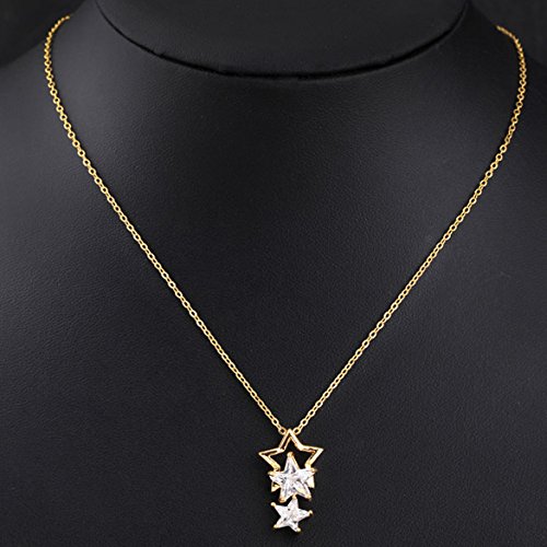 - Feature : A wonderful gift for your female friends / The delicate multilayer pentagram star shaped necklace brings you uniqueness / Suitable for party, date, celebration and any other occasions / Material: Copper + Zircon / Necklace Length: 44CM