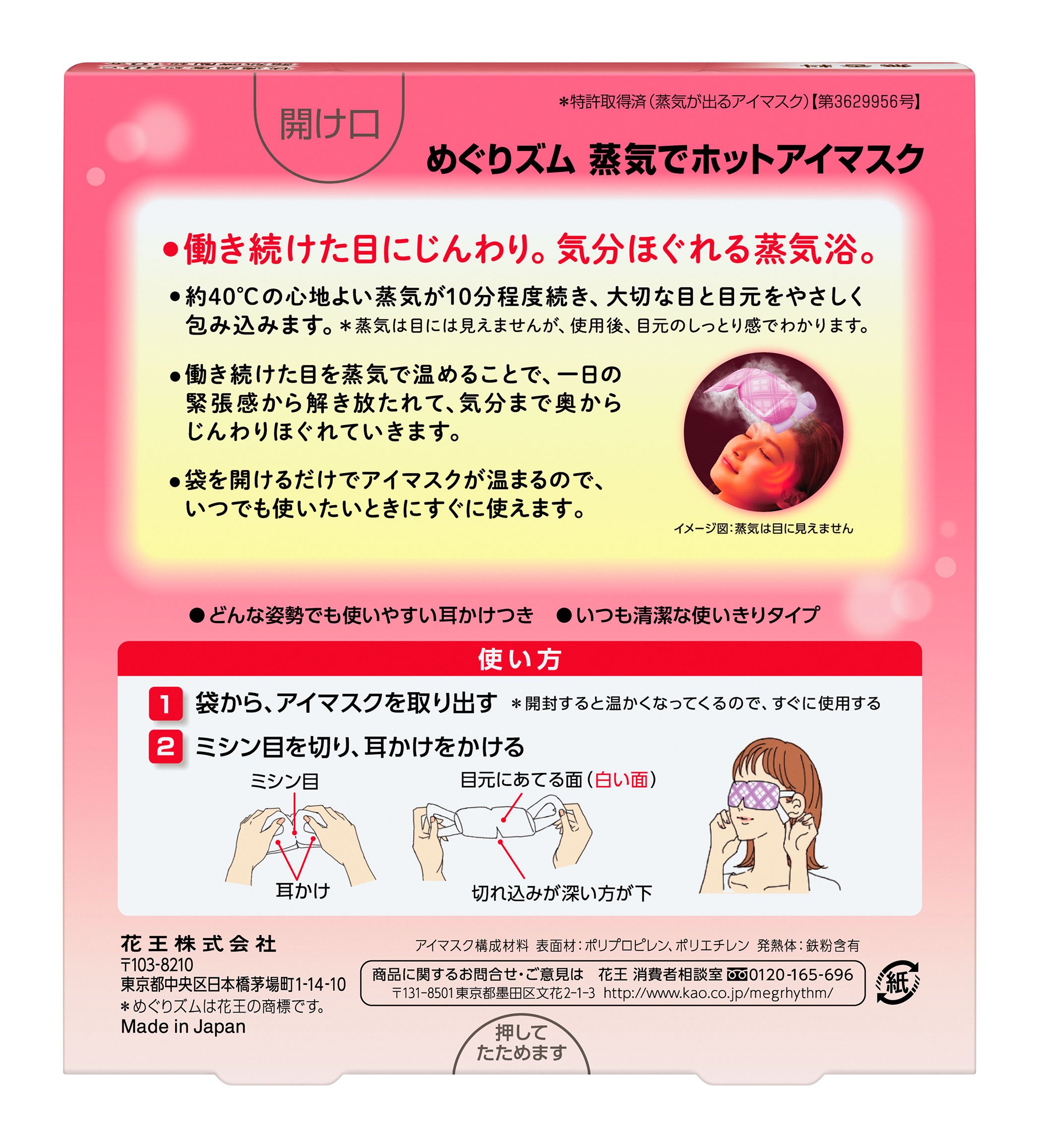 MEGURHYTHM Kao Steam Hot Eye Mask 5 Count