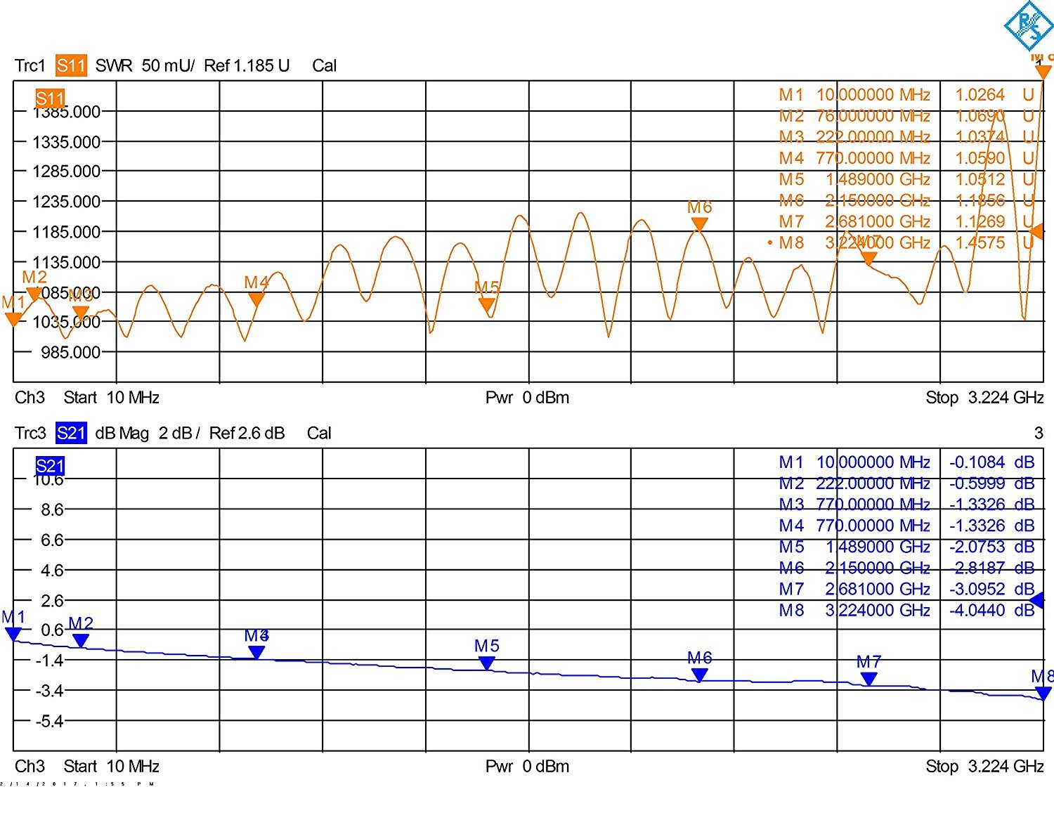 ● It has a flat frequency characteristic over a wide band of 10 to 3224 MHz.