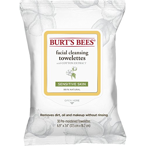 Burt's Bees Sensitive Facial Cleansing Towelettes with Cotton Extract, 30 Count