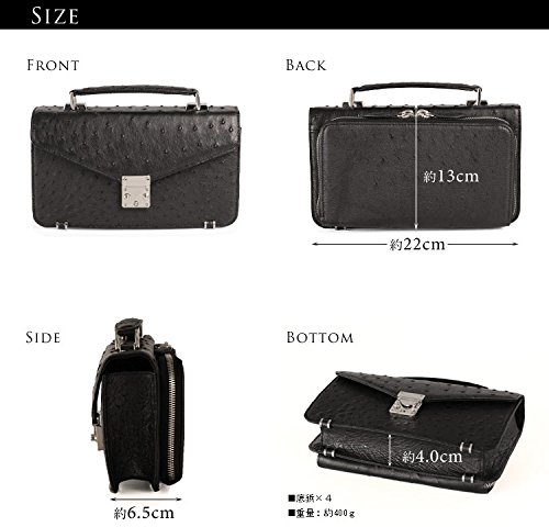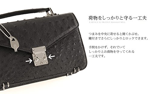 -. Feature : 紳士の手元を上品に飾るオーストリッチのハンドバッグ クイルマークが綺麗に並んだオーストリッチを使用しました。 ポイントは、賢い背面のポケット。 バッグの収納としての機能はもちろん、小銭や紙幣、カードまで入るので 財布としても機能する、優れたポケットです。 / ■サイズ 横22cm×高さ13cm×マチ6.5cm ショルダーベルト長さ(金具を含む)133cm 【素材】表地:オーストリッチ 内装:合皮 【重量】 400g 【備考】・鍵付きですのでロックが可能・付属のベルトを取り付け、 ショルダーバッグとしてもお使いいただけます。・底鋲×4