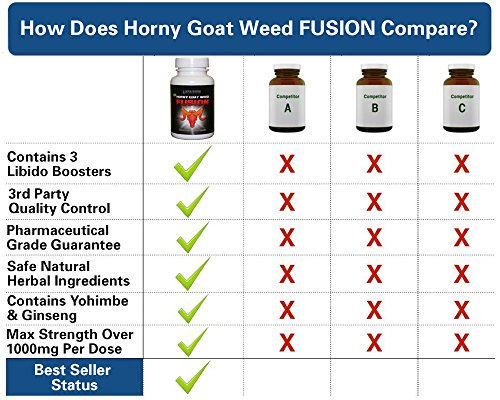 - Title : Horny Goat Weed Fusion 1000 mg with Yohimbe & Asian Ginseng (60 Capsules) PROVEN Libido Booster with Better Than Money Back Guarantee.