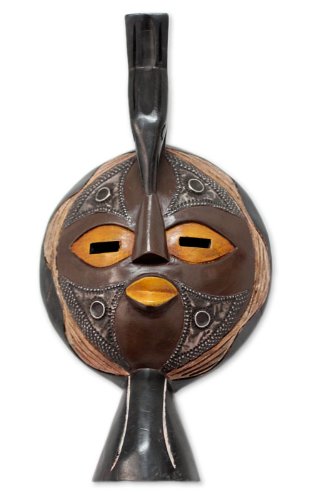 NOVICA Decorative Ghanaian Large Sese Wood Mask, Brown 'Valiant Woman'
