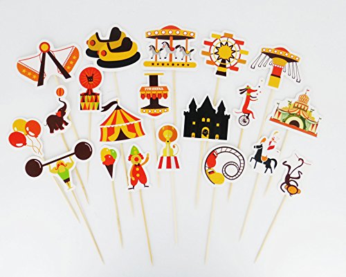 Yunko 40pcs Amusement Park Hercules Carousel Balloon Cake Cupcake Decorative Cupcake Topper for Kids Birthday Party Themed Party Baby Shower