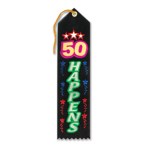 Beistle AR118 6-Pack 50 Happens Award Ribbon, 2 by 8-Inch