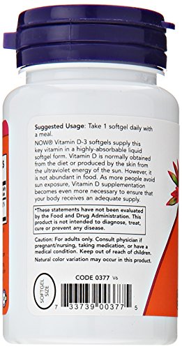 NOW® Vitamin D softgels supply this key vitamin in a highly-absorbable liquid softgel form. Vitamin D is normally obtained from the diet or produced by the skin from the ultraviolet energy of the sun. However, it is not abundant in food. As more people avoid sun exposure, Vitamin D supplementation becomes even more necessary to ensure that your body receives an adequate supply.Feature