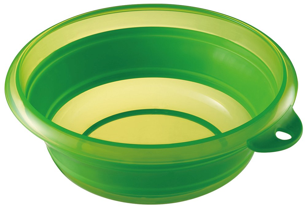 色:グリーン サイズ:折り畳み時:約W253×D274×H33mm、組立時:約W253×D274×H92mm 本体重量:約180g 素材・材質:枠・底=ポリプロピレン、本体=熱可塑性エラストマー